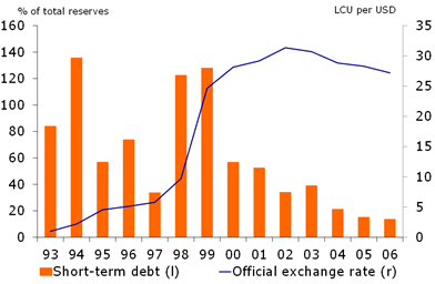 By mid-1998 liquidity in international markets had reduced and Russia’s current account balance further deteriorated as oil prices continued to fall internationally. The interest rates in Russia increased by 150% in 1998, the government tried to address this situation by devaluing the Ruble. They used a floating peg system, with which the central bank kept the exchange rate between ruble and dollar within a certain range. When the ruble fell below the range the central bank used to sell foreign reserves, so as to create demand for ruble and pull its value back up. This practice proved useful only for a short period, as the central bank started running out of foreign exchange reserves needed to stabilize the currency. In addition to this the government also issued a 90-day moratorium on payments by commercial banks to foreign creditors. In September of 1998, the government realized that they could no longer use their reserves to stabilize the value of the currency. So, they instead took a decision to devaluate the currency. Because of this decision the Russian stock market and bonds collapsed. The domestic debt, the government had to pay had risen to 40$ billion.