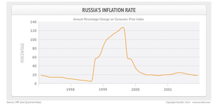 From this graph we can see how the inflation in Russia reached its peak during the crisis.